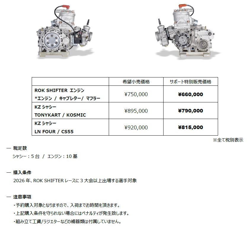 2026年、ROK SHIFTERシリーズ参戦ドライバーに対しての、サポート価格提供のご案内です。